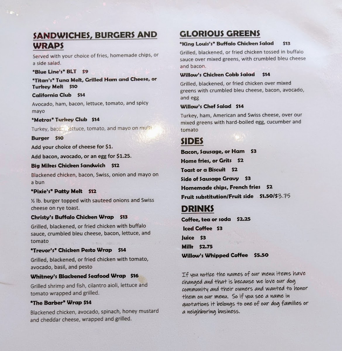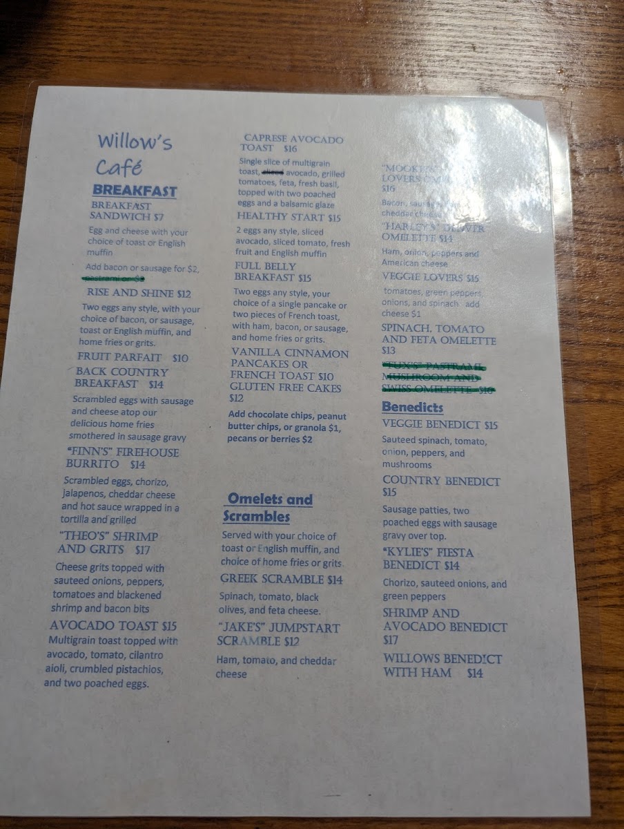 Introducing the Menu at Willow's Cafe